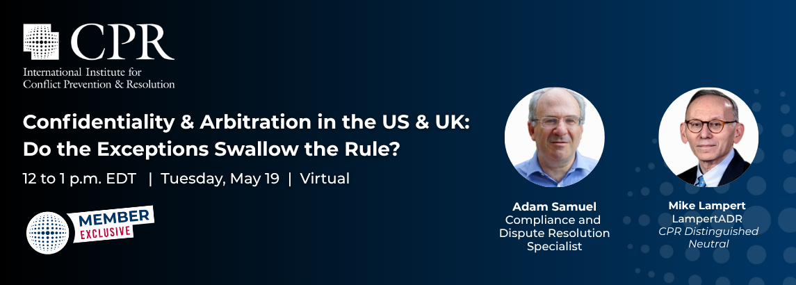 Confidentiality is often cited as an advantage of arbitration over litigation in both the US and England. But do the circumstances where confidentiality is denied mean that this advantage is an illusion? In this program, Mike Lampert and Adam Samuel will be discussing and contrasting privacy and confidentiality in both countries.
