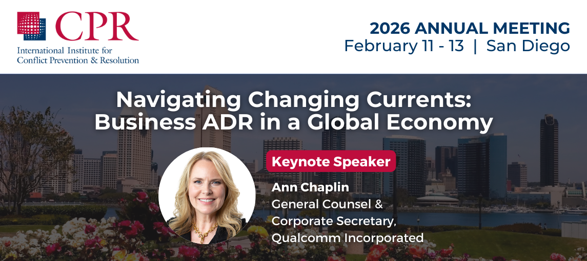 CPR Institute’s 2026 Annual Meeting will offer attendees insights into how to harness the new developments and navigate changing currents in conflict management, as well as domestic and international mediation and arbitration, including ethics.