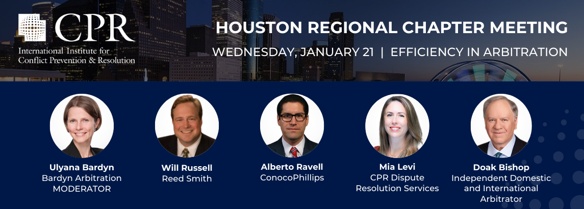 The CPR Institute’s Energy, Oil and Gas Alliance and Houston Regional Chapter are pleased to present the 9th annual Houston Regional Meeting, taking place on January 21 in-person, at the offices of Reed Smith. We hope you can attend this FREE VIP energy-insider event, open to the public!